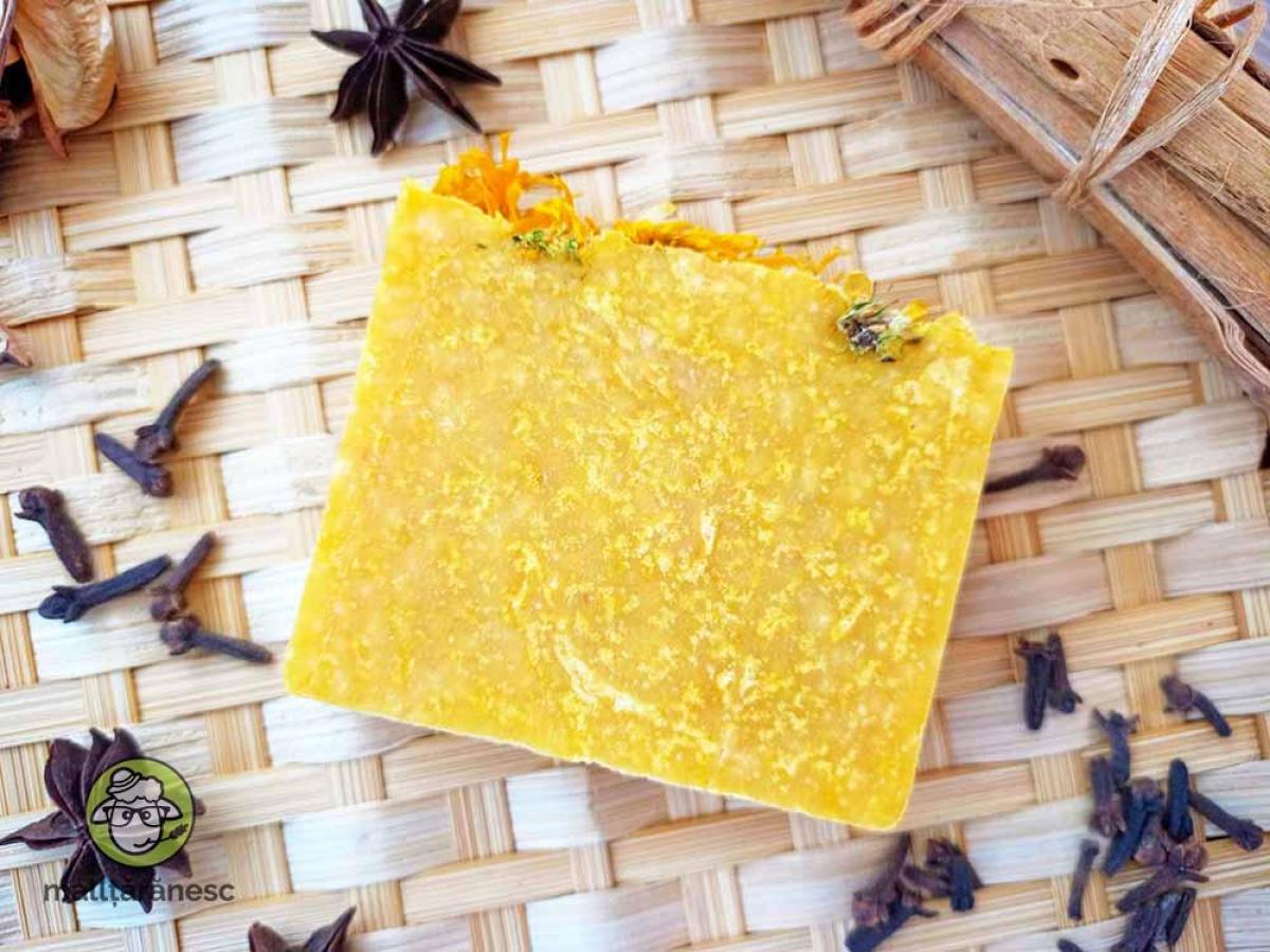 Un săpun exfoliant blând, potrivit pentru pielea normală/uscată afectată de diverse probleme. Realizat cu dovleac integral și ulei esențial de cuișoare.