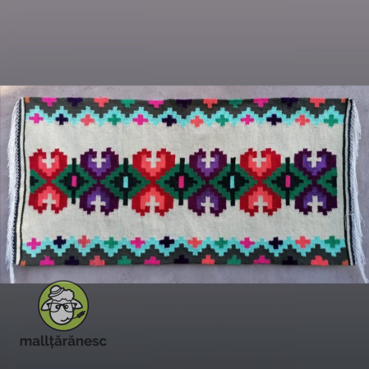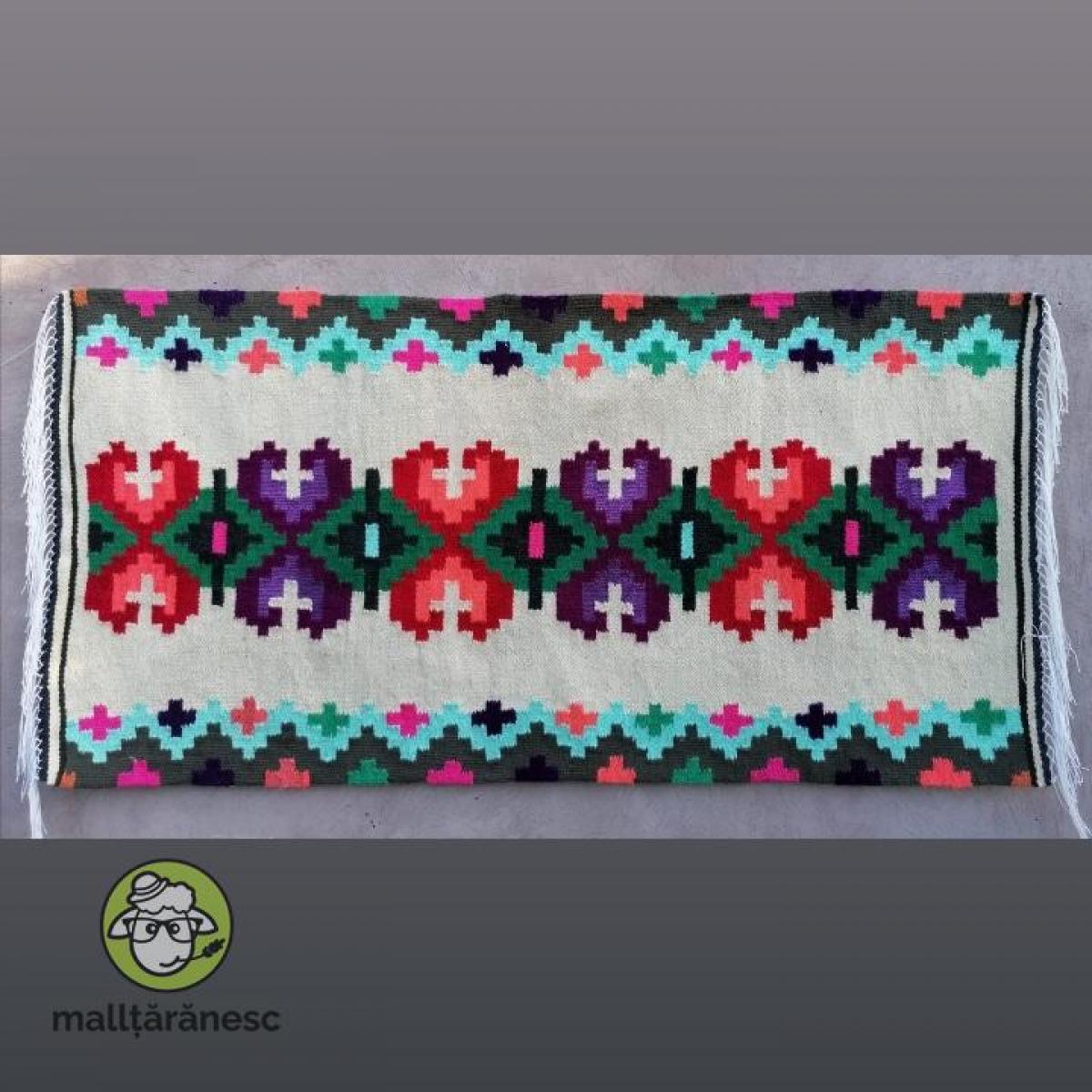 Covor din lână, (țesut la război, dimensiuni: 60/182 cm, motiv floral stilizat "Lalele")