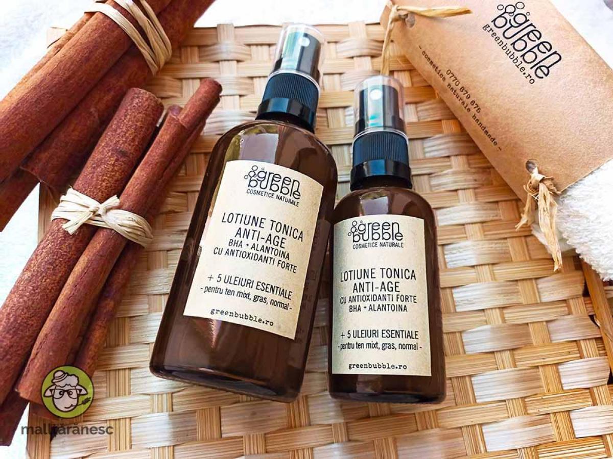 Loțiune Tonică Anti-Age BHA + Alantoina cu Antioxidanti Forte + 5 Uleiuri Esentiale pentru toate tipurile de piele. Loțiunea tonică conține un complex de antioxidanți forte și ingrediente active pentru îmbunătățirea aspectului general al pielii, atenuarea și previnirea apariției ridurilor.