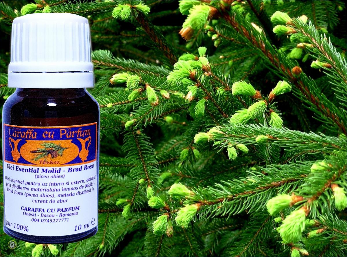 Ulei Esential Molid 10ml - Brad Rosu Picea Abies - Calitate Premium Bio 100% Pur Natural Integral, Uz Extern si Intern - Balsamic Calmant Antiviral Antidolorific Antifungic Aromaterapie Antiinflamator Antibacterian - Caraffa cu Parfum
