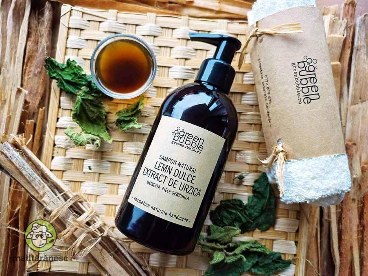 Șampon Natural Lemn Dulce și Urzică. Un șampon antimătreață, pentru piele sensibilă și păr gras. Șamponul conține ingrediente active benefice pentru îngrijirea și protecția scalpului, cu acțiune liniștitoare asupra scalpului, seboregulator, reduce senzația de mâncărime, exfoliază blând și îndepărtează scuamele.