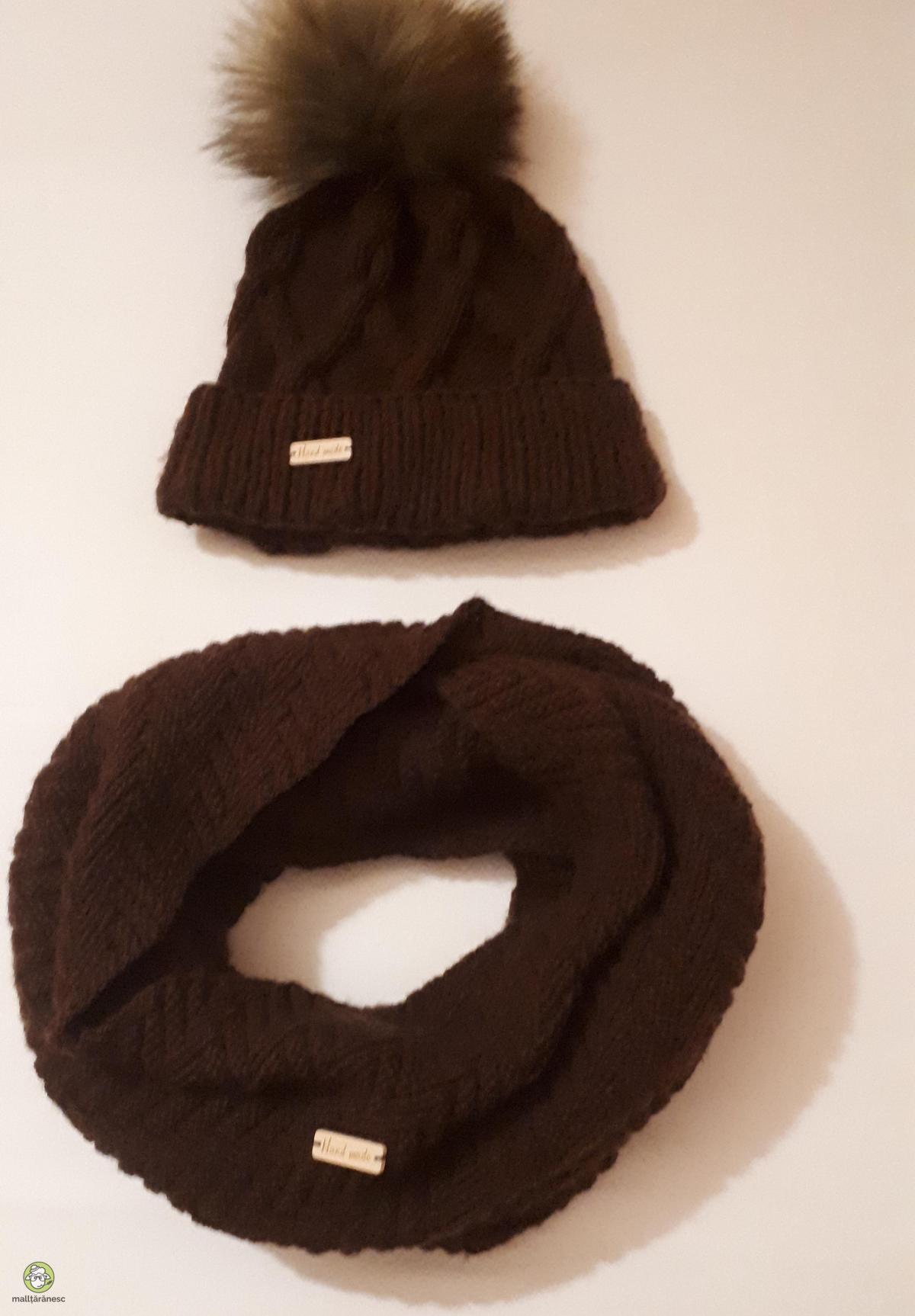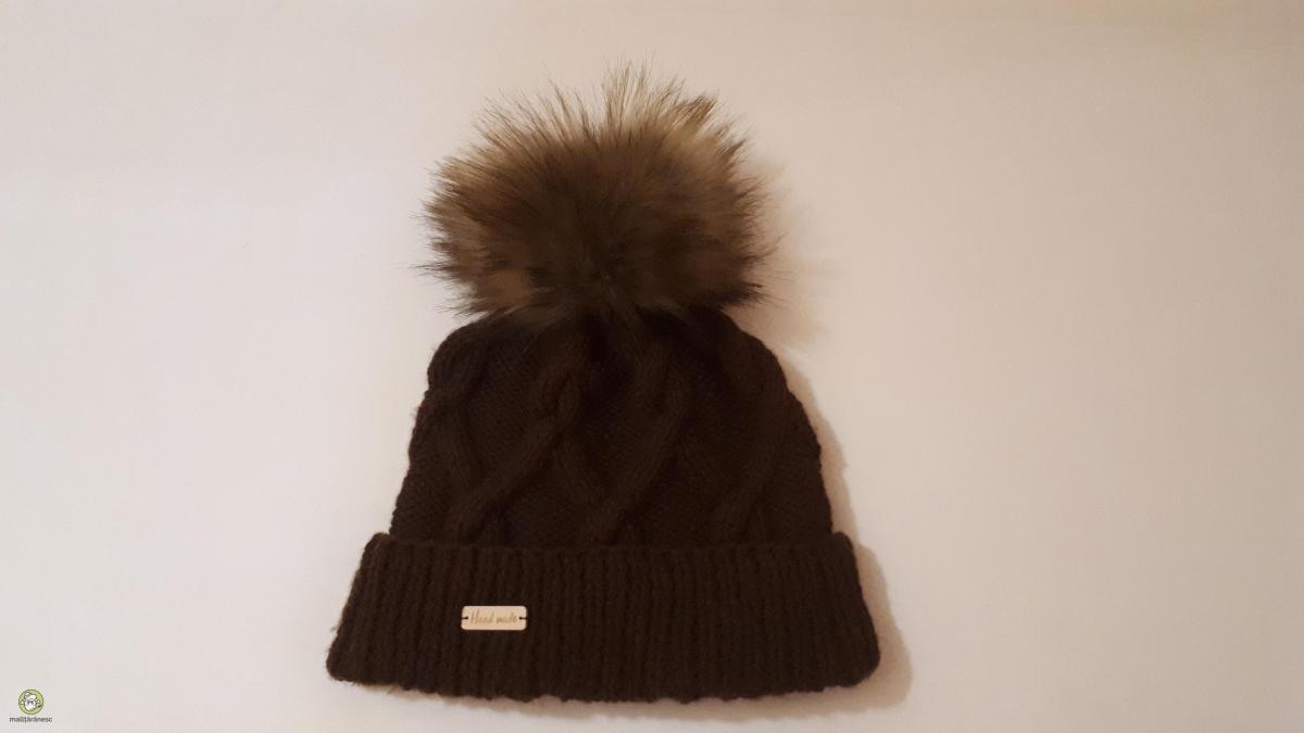 Set caciula si guler tricotat pentru barbati. Caciula este accesorizata cu mot din blana artificiala. La cerere se pot lucra in marimi si culori diverse