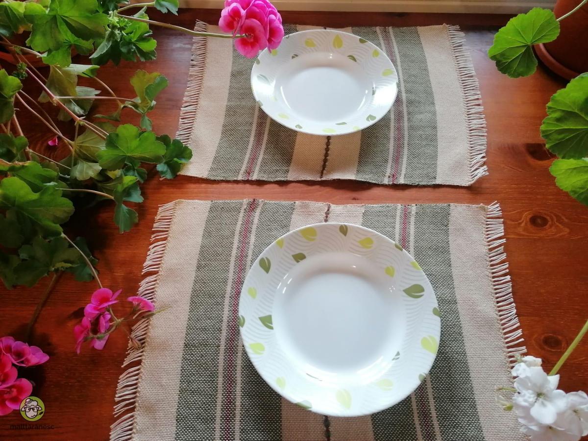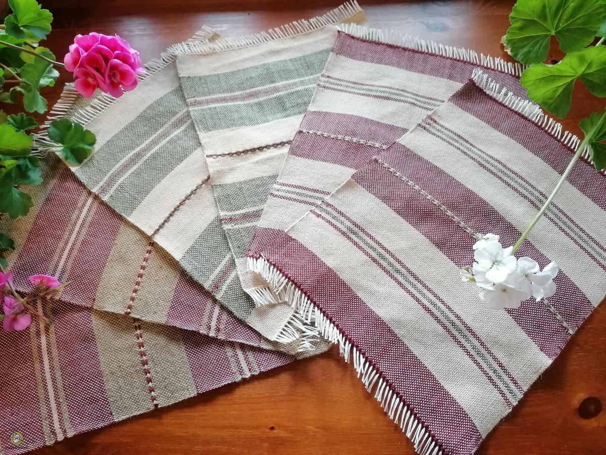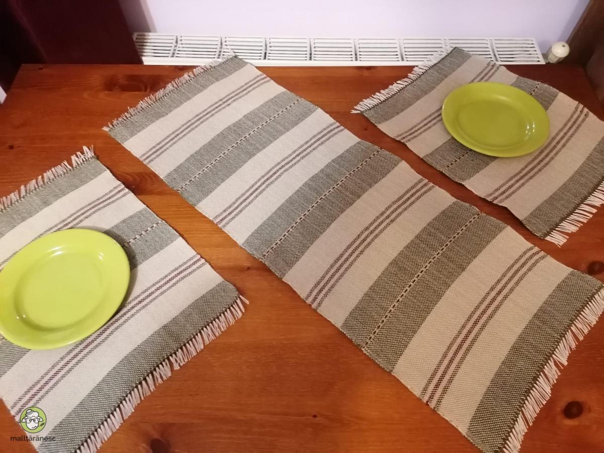 Set masa realizat manual la razboiul de tesut compus din 2/4/6 suporturi pentru farfurii (30 cm x 40 cm) si traversa masa (30 cm x 80 cm).