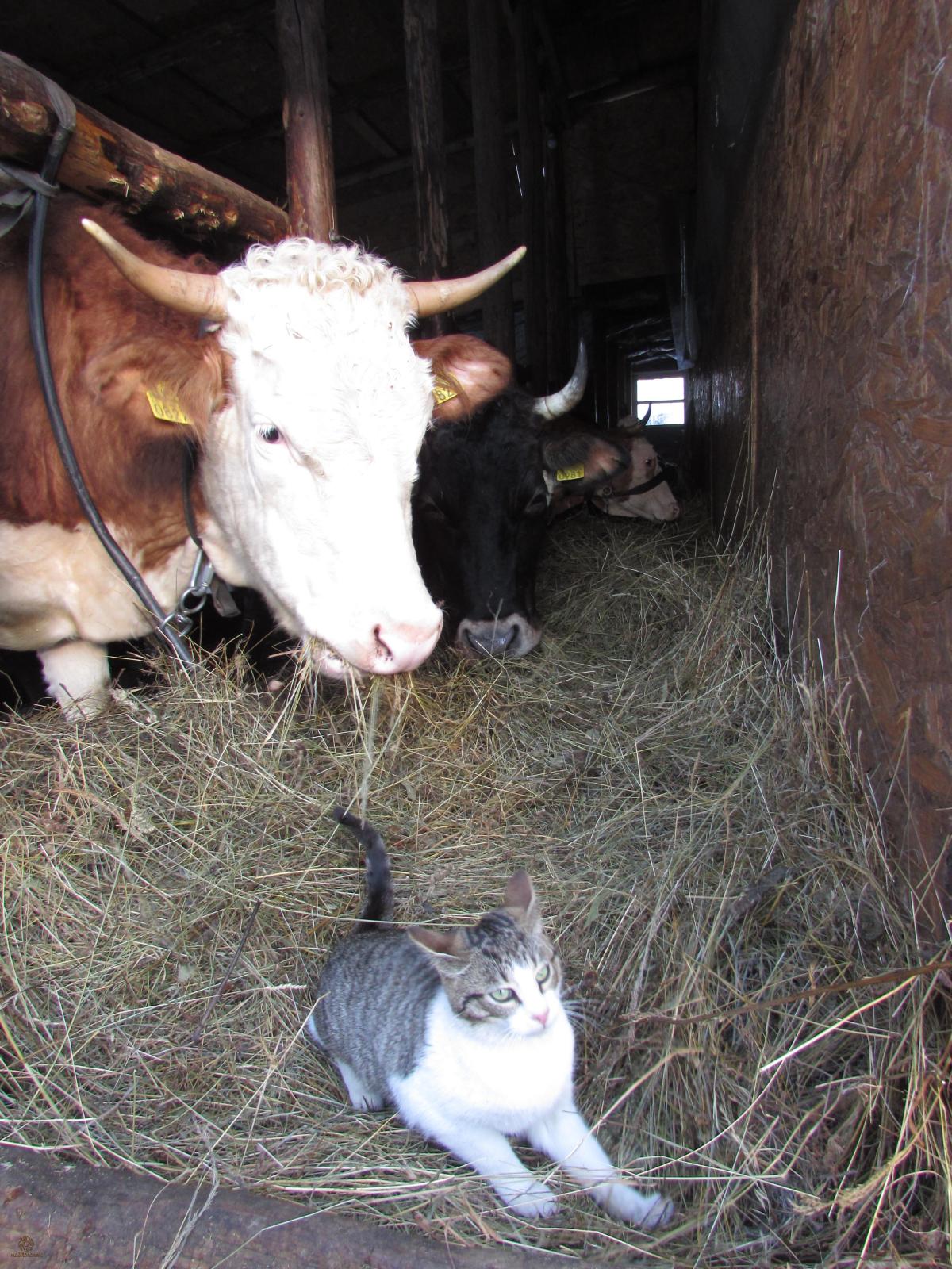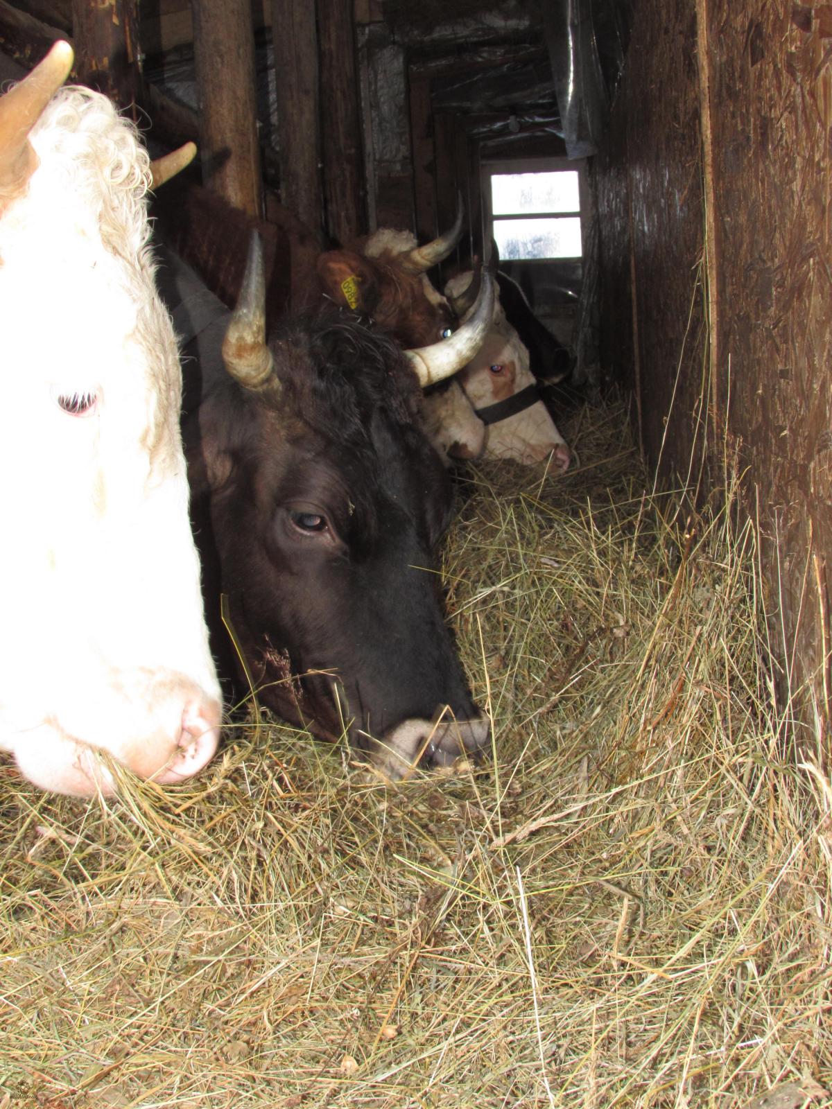 Animalele locuiesc în grajd, au adăpători, deci au apa la discreție. Dimineața și seara, la ore stabilite, le îngrijim: curățăm bălegarul, resturile de fân; apoi le dăm animalelor fân și tărâțe; mulgem văcuțele sau lăsăm vițelușii să pape singuri de la mamele lor. Atunci când sunt afară, există un recipient permanent cu apă la dispoziția lor, iar iarba au cât cuprinde privirea....