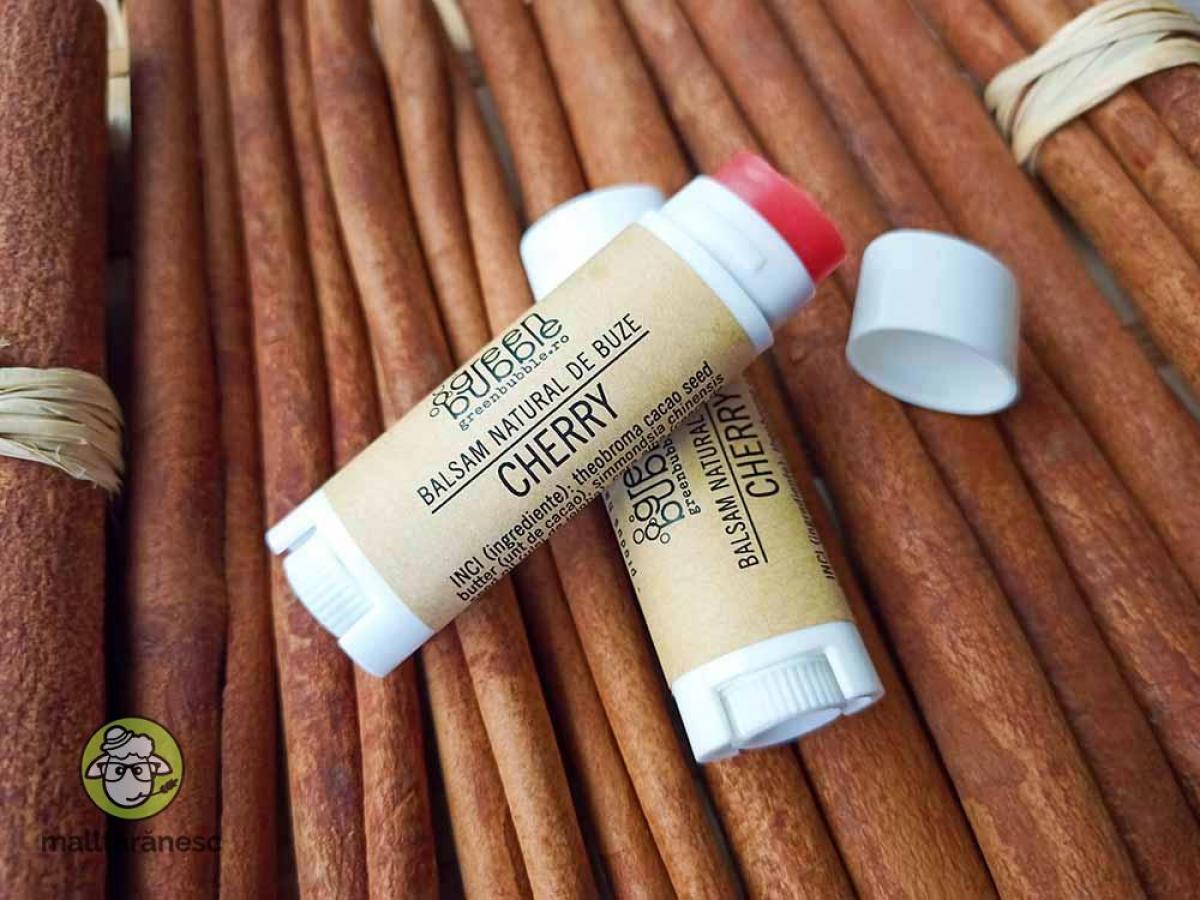 Balsam Natural Buze Cherry cu extract aronatic natural de cireșe. Fie soare, fie vânt, pentru buzele uscate şi crăpate am pregătit acest Balsam Natural Buze Cherry. Balsamul este reparator, protector, emolient, previne uscarea și crăparea buzelor, dă luciu buzelor. Potrivit pentru copii și adulți. Dacă ești trist, pune mai mult balsam pe buze și zâmbește. Principalele ingrediente active pentru Balsam Natural Buze Cherry: Deodorantul este realizat cu Unt Cacao, Ulei de Jojoba, Ceară de Albine, Vitamina E și Extract Natural Aromatic de Căpșuni. Unt cacao Untul de cacao are proprietăți antioxidante și de regenerare pentru piele. Bogat în substanțe nutritive, polifenoli, antioxidanți și vitamine, untul de cacao se regăsește în compoziția nenumăratelor produse cosmetice. Untului de cacao este emolient, nutritiv și reparator, ajută la regenerarea filmului hidrolipidic al pielii, întărind bariera protectoare a pielii și prevenind deshidratarea. Untului de cacao are și calități antioxidante, încetinește procesul de îmbătrânire cutanată, întârzie apariţia ridurilor şi a altor semne de îmbătrânire. Untul de cacao ajută la prevenirea formării vergeturilor și la menținerea elasticității pielii, conferă pielii un aspect mătăsos şi strălucitor, contribuie la o bronzare naturală şi uniformă, intensifică regenerarea şi întăreşte rezistenţa pielii. Uleiul Cocos Virgin Ecologic Presat la Rece Uleiul de Cocos este un ulei care hidratează și calmează pielea afectată de roșeață și iritații. Este un ingredient nutritiv, emolient, care lasă pielea fină, mătăsoasă, moale și hidratată. Uleiul de cocos virgin ecologic presat la rece păstrează aroma naturală a nucii de cocos, care se regăsește și în produsul nostru. Ulei Jojoba Bio Virgin Uleiul de jojoba este cunoscut pentru faptul că are o compoziție asemănătoare sebumului uman având o compatibilitate foarte bună cu pielea și părul. Uleiul de jojoba pătrunde ușor în piele și nu lasă pielea grasă, acesta fiind potrivit pentru toate tipurile de piele/ten. Uleiul de jojoba protejează împotriva deshidratării, este emolient, întărește bariera hidrolipidică a pielii, îmbunătățește vitalitatea și aspectul părului. Ceară Albine Ceara de albine este un produs 100% natural. Ceara este conține un amestec complex de esteri grași, acizi grași și compuși hidrocarbonați. Se îngroașă și crește puterea de formare a unui film protector la balsamurile și rujurile naturale. Are efect calmant și ajută pielea să-și mențină hidratarea. Are și rol de barieră de protecție, formând un strat fin protector pe piele. Această ceară de albine organică, de o calitate excepțională care te seduce prin moliciune și mirosul său delicios de miere. Extract Natural Aromatic Cireșe Extrasul are miros de cireșe coapte la soare, migdale delicioase, catifelate și subtil siropoase care pot fi savurate tot timpul anului în balsamul nostru. Mod de Utilizare/Aplicare Balsam Natural Buze Cherry Aplică cu o glisare ușoară o cantitate mică pe buzele curate. Repetă procedura imediat ce buzele sunt iar uscate.