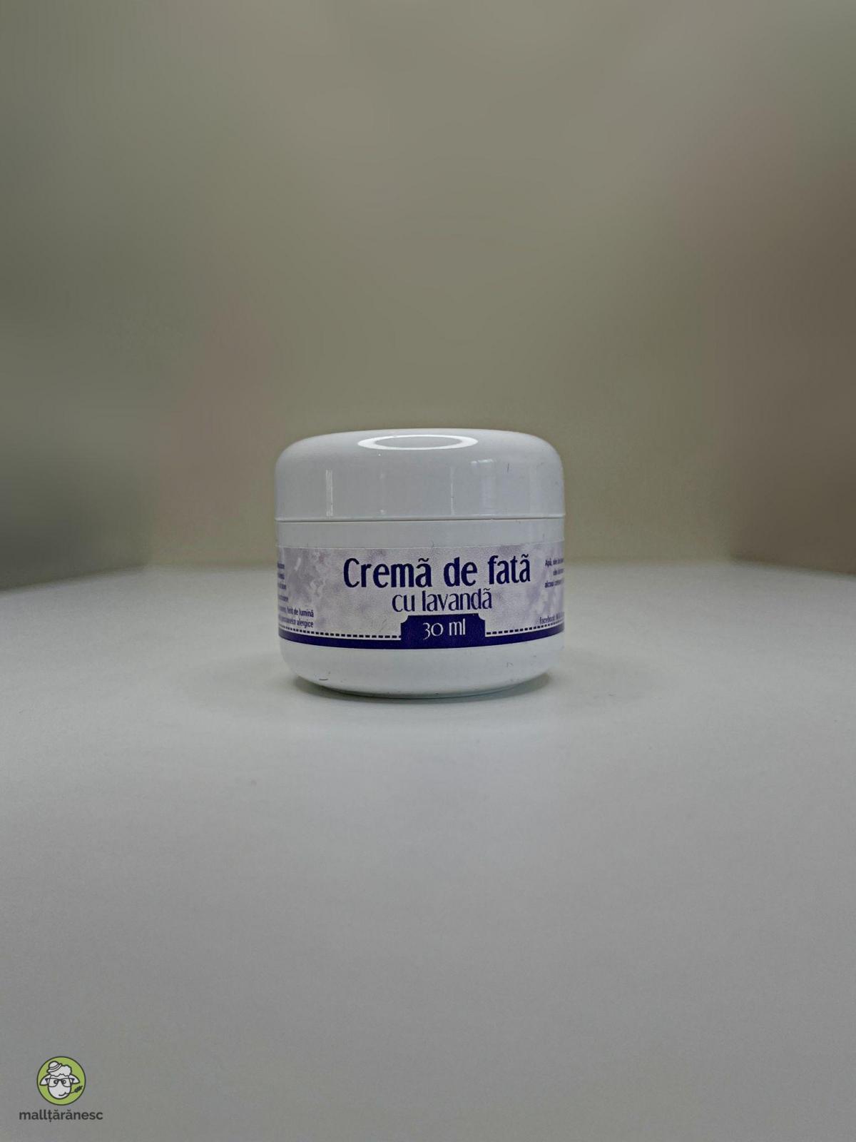 Crema de fata hidratanta cu lavanda, pentru toate tipurile de piele, non-grasa, se aplica usor. Contine: apa de lavandă , ulei de lavanda, ulei de macadamia,ulei de avocado,ulei de geraniu, glicerina, unt de shea, lysolecitina, vit E, acid hialuronic, coenzima q10