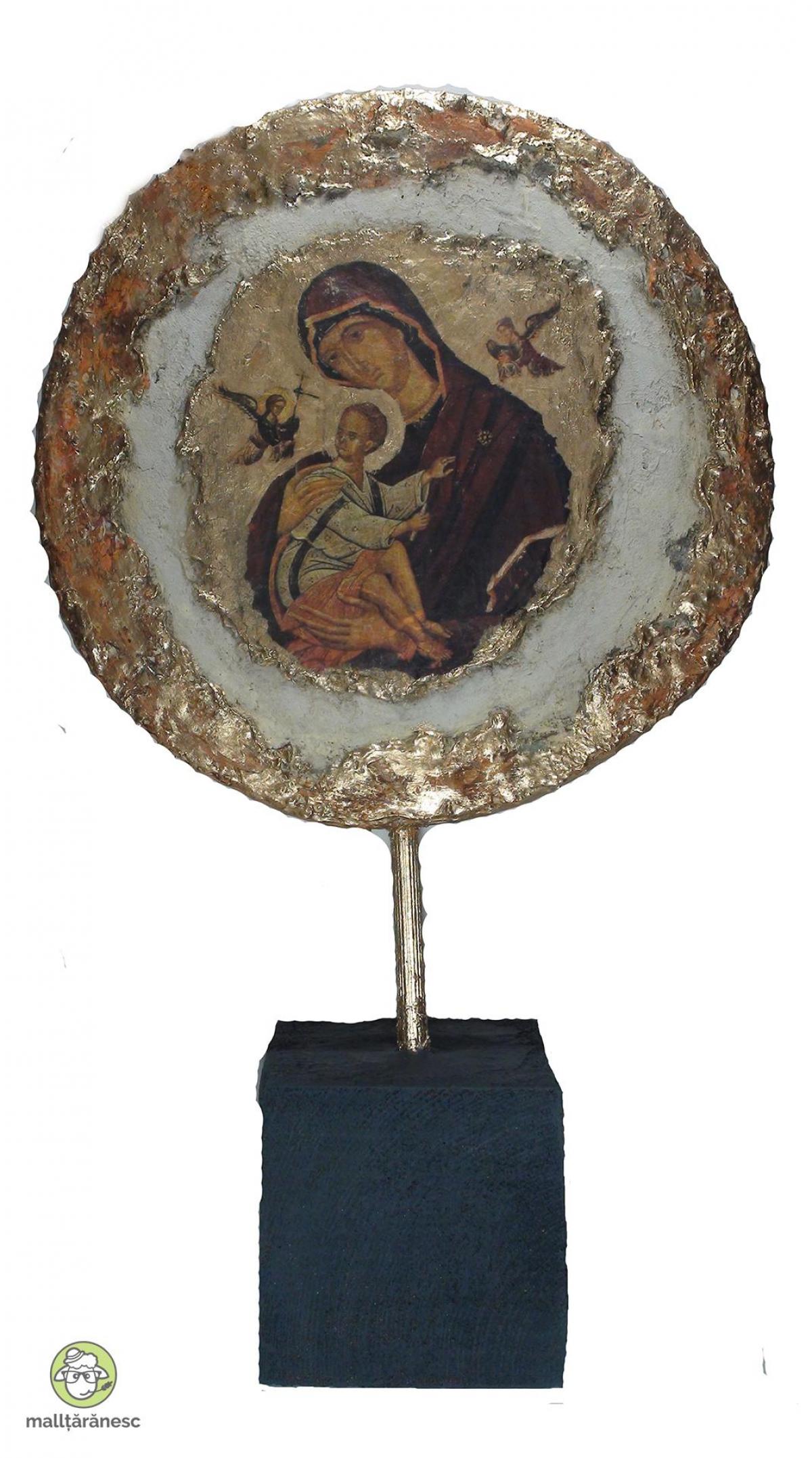 Icoana Bizantina Stativ pentru Masa Cu Technica de Decoupaj si Pictat Manual cu Culori Ecologice 100% Propuneri pentru decorarea spațiilor precum și selecția de cadouri (pentru profesioniști și persoane fizice). Viziunea noastră este să aducem arta mai aproape de casa si spațiul de lucru al fiecăruia, cu obiecte decorative de cea mai bună calitate și cel mai bun preț. Va propunem articole de înaltă estetică, realizate la Atelierul Arca Tradițiilor din Curtea de Arges. Lucrăm cu mare pasiune și dragoste, motiv pentru care ne simțim mândri de fiecare dată când primim o comanda, pentru unul dintre produsele din colecția noastră, si ajunge în spațiul tău. Designul interior afectează direct atât atmosfera unei case, cât și starea de spirit a oamenilor care locuiesc în ea. Alegerea corectă a obiectelor și combinațiile stilate pot transforma un spațiu indiferent într-o locuință impresionantă, cu un mediu cald și primitor. Combinația frumoasă de obiecte decorative de artă creează caracter într-o casă și determină personalitatea proprietarului. Așa că este perfect logic atunci când intri în acest proces de selecție, să-ți faci griji cu privire la decizia ta, cu privire la dimensiunea potrivită, culorile potrivite și stilul potrivit pentru spațiul tău. Ai încredere în sentimentele tale! În artă nu există trebuie, alegem cu criterii personale și cu intuiție. Arta este o modalitate de exprimare prin culoare, conținut și textură. Așa că alege cu inima și asigură-te că fiecare obiect decorativ de Arta, iti creează emoții puternice. Totuși, nu te grăbi! Întrebați-vă ce vă place la la obiectul decorativ anume, culorile, tema sau altceva? Mai vezi-l peste o oră sau a doua zi și dacă tot te face să te simți bine, atunci cumpără-l, apasand butonul de comanda. Noi va stam la dispozitia pentru orice informatia suplimentara. Obiecte de Decor originale pentru casa, calitate excelenta cu o estetica inalta la preturi foarte accesibile. Cum fiecare persoană este unică, așa credem în unicitate prin expresia casei unice și decorat cu dragoste. Articolele noastre sunt create pentru a înfrumuseța și evidenția personalitatea fiecăruia.