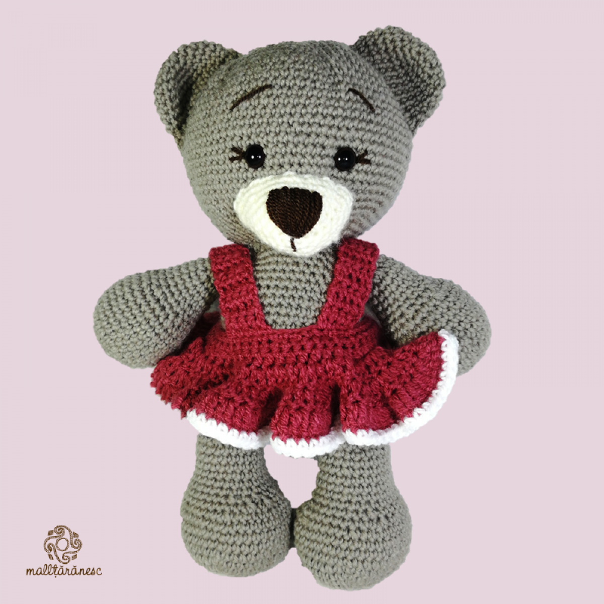 Acasă / Textile / Jucarie crosetata manual, Ursulet cu rochita roz, Umplutura hipoalergenica, 30 cm