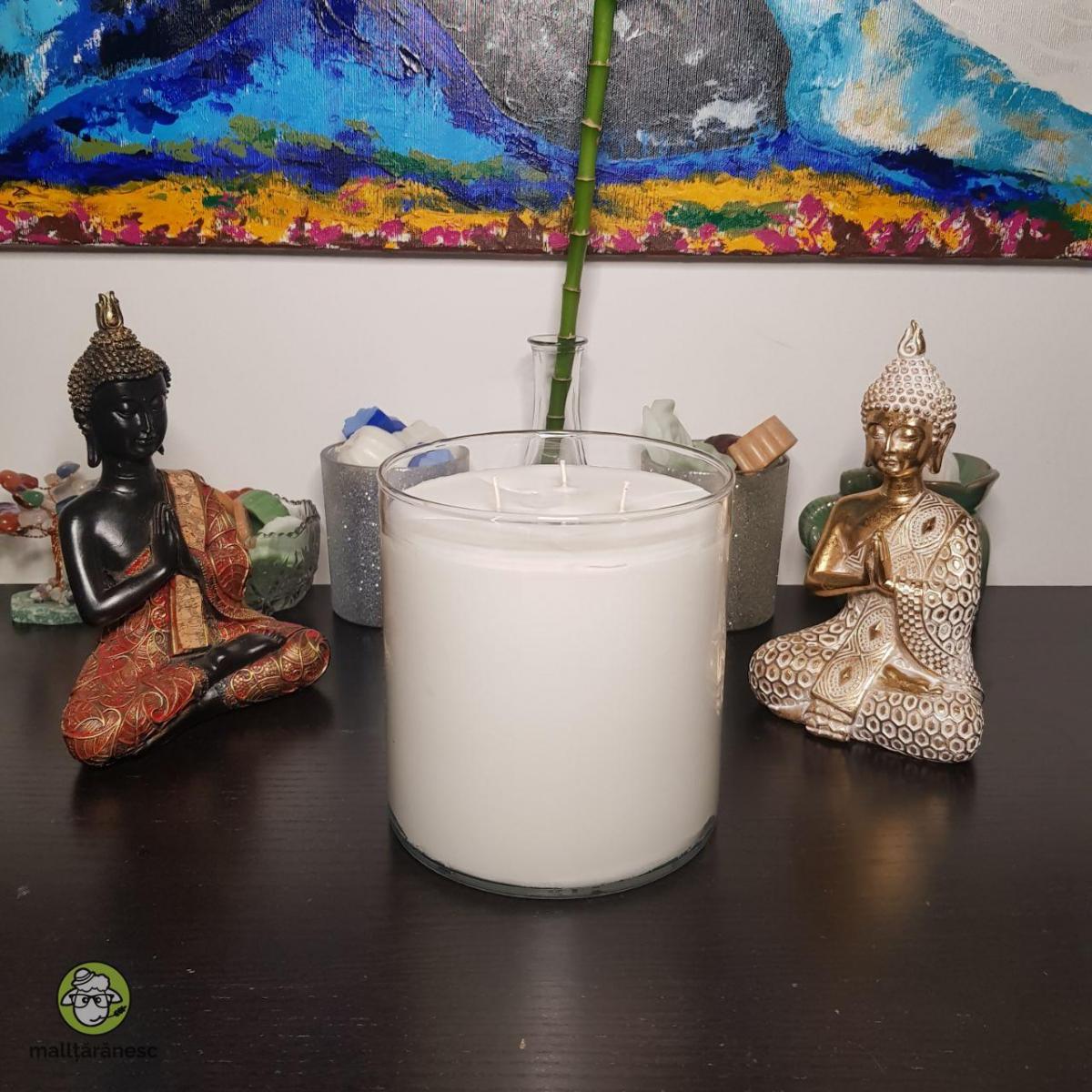 Lumanare parfumată handmade pentru terasă din ceară de palmier ⭐ Greutate: 1.5 Kg. Arome disponibile: Lavandă, vanilie, scorțișoară, portocală, palmarosa și multe altele.