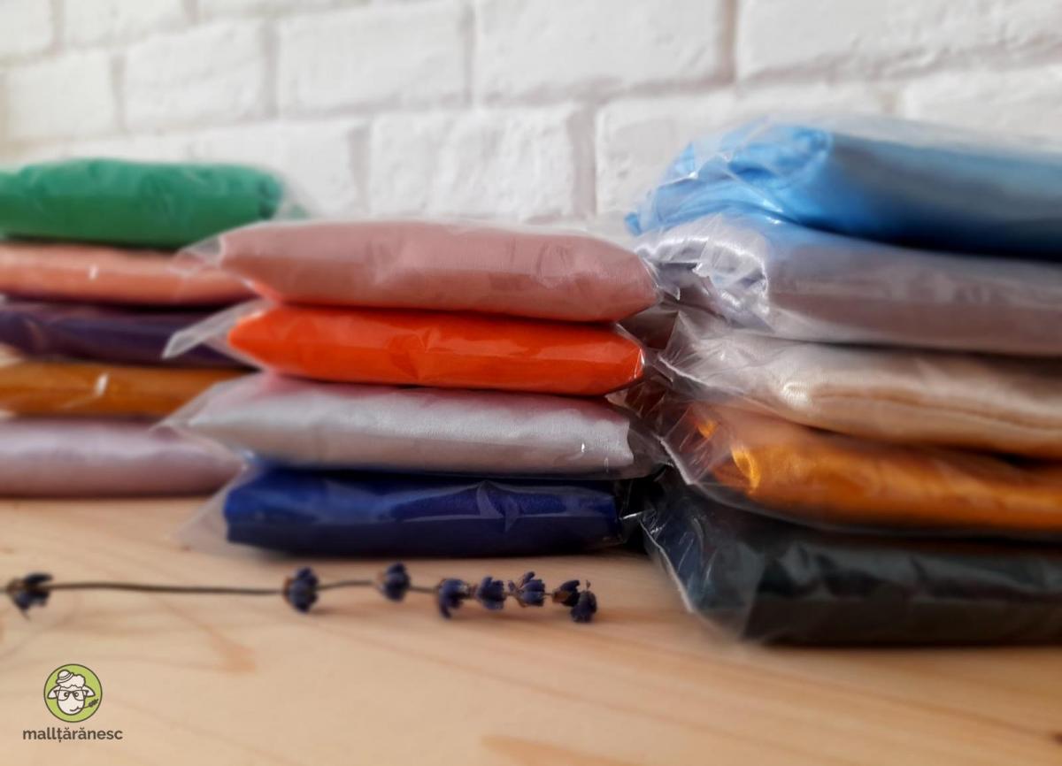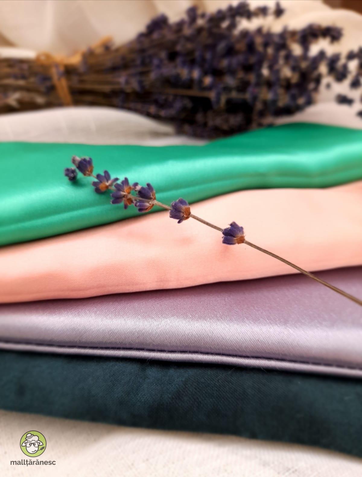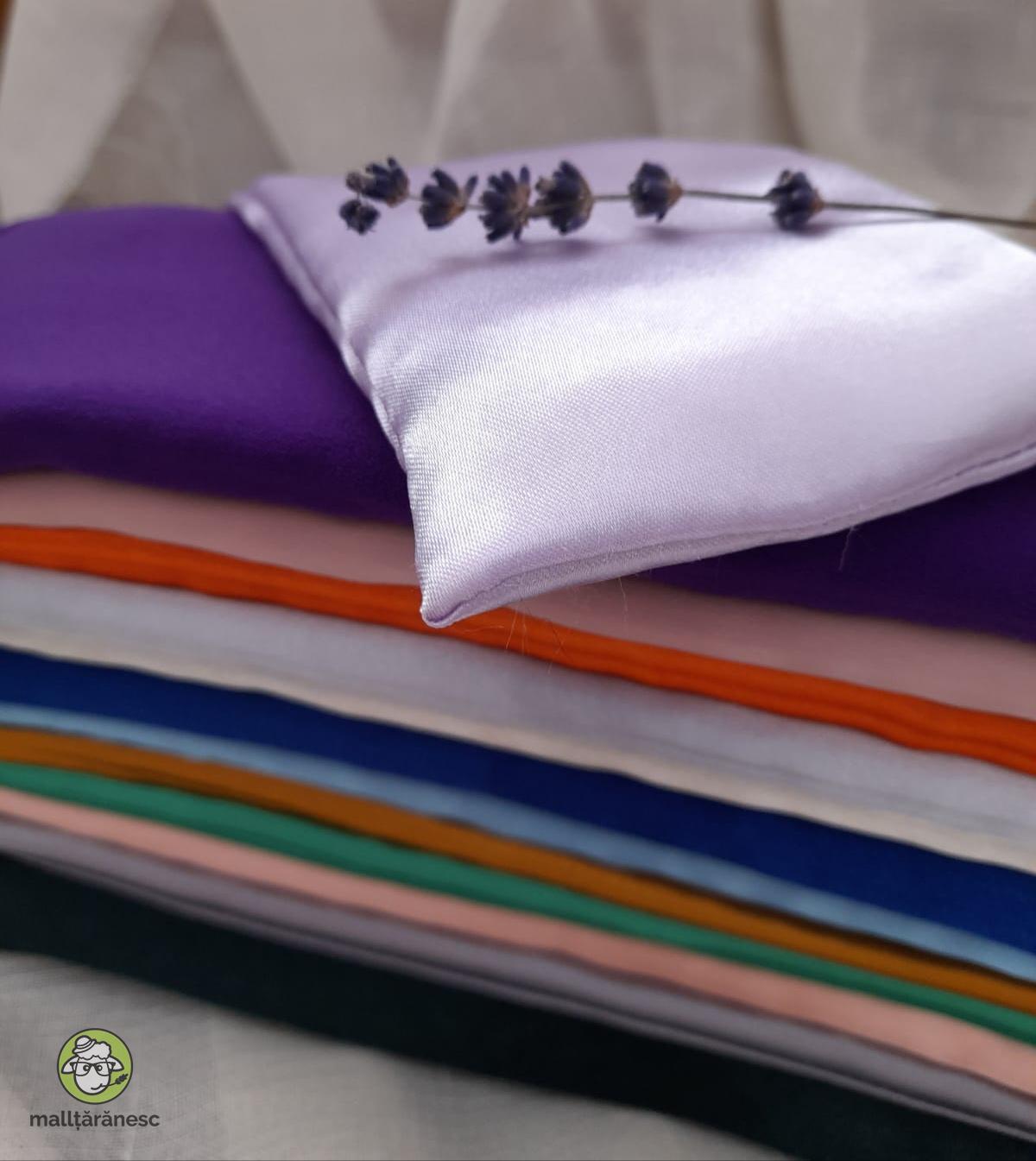 Pernițe pentru ochi sau frunte, umplute cu lavandă organică și orez, realizate din materiale moi, vesele și plăcute la atingere, cu suficientă greutate pentru a experimenta o presopunctură blândă în jurul ochilor.