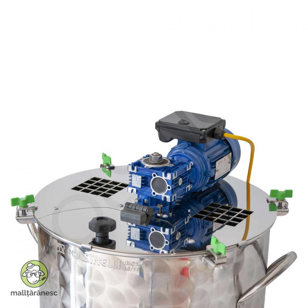 Oală motorizată din oțel inoxidabil alimentar de 35 litri, cu mixer, pentru gem, dulceata, zacusca, sirop, peltea, serbet etc. Oala motorizată de 35 de litri fabricata din oțel inoxidabil alimentar (18/10) pentru procesare legume-fructe este un produs de calitate profesională conceput pentru sprijini companiile și pasionații în etapele de procesare a legumelor si fructelor. Mixerul are 4 pale iar pe pala de jos care freaca tot timpul fundul oalei este atasata o platbanda din silicon alimentar evitand astfel prinderea produsului de fundul oalei prin aceasta evitandu-se arderea sau caramelizarea produsului. In partea de jos, in exterior, are sudata o bucșă filetată de 1" din oțel inoxidabil alimentar la care se monteza un robinet cu bilă de 1" din otel inoxidabil care este inclus in kit. Pe acest robinet se poate goli produsul procesat direct in borcan sau in sticla. Oala este echipata si cu un termometru analogic profesional care este protejat cu o carcasa solida din otel inoxidabil alimentar si ajuta procesatorul la controlarea temperaturii produsului procesat. Oala motorizata de 35 de litri poate sa satisfaca nevoile calitative si de productivitate ale companiilor sau a persoanelor private. In componenta are un motorreductor de transformarea turatiei si marirea puterii. Agitatorul sau mixerul cuplat la motorreductor este dotat cu 4 lame din oțel inoxidabil alimentar. Oala este echipata cu mânere ergonomice și un capac din tabla de inox alimentar de 1,5mm grosime pe care este fixat motorul cu reductorul. Capacul se fixeaza de oala cu 4 cleme cu piulite fluture. Capacul are 2 orificii pentru evacuarea aburului, precum si un capac de vizitare a produsului in timpul procesarii, cu gratar de protectie. DATE TEHNICE: Oala este confectionata din oțel inoxidabil 18/10 (AISI 304) Răzuitoare din silicon este fixata pe lama inferioară a mixerului. Termometru analog cu protectie din otel inoxidabil alimentar. Intrare sondă și protecție termometru. Capac din oțel inoxidabil de grosime mare (1,5mm) Cleme din oțel inoxidabil pentru fixarea capacului de oala. Orificii pentru evacuarea aburului. Motor 220 V/900W. Agitator cu 4 lame din otel inoxidabil. Mânere din oțel inoxidabil. Robinet cu bilă din oțel inoxidabil 1 ”GAS M X ENO 30 M. Cot ENO 30 din plastic alimentar care se monteaza pe robinet. Bucșă filetată din oțel inoxidabil de 1 ”pentru conectarea robinetului. Diametrul oalei la interior: 370 mm Inaltime totala: 370 mm Dimensiuni totale cu motor: 53 x 55 cm Grosimea tablei la fund: 1,5 mm. Grosimea peretelui oalei: 1 mm. In portofoliu mai am oale de: 50 litri, 75 litri, 100 litri, 150 ltri si 200 litri