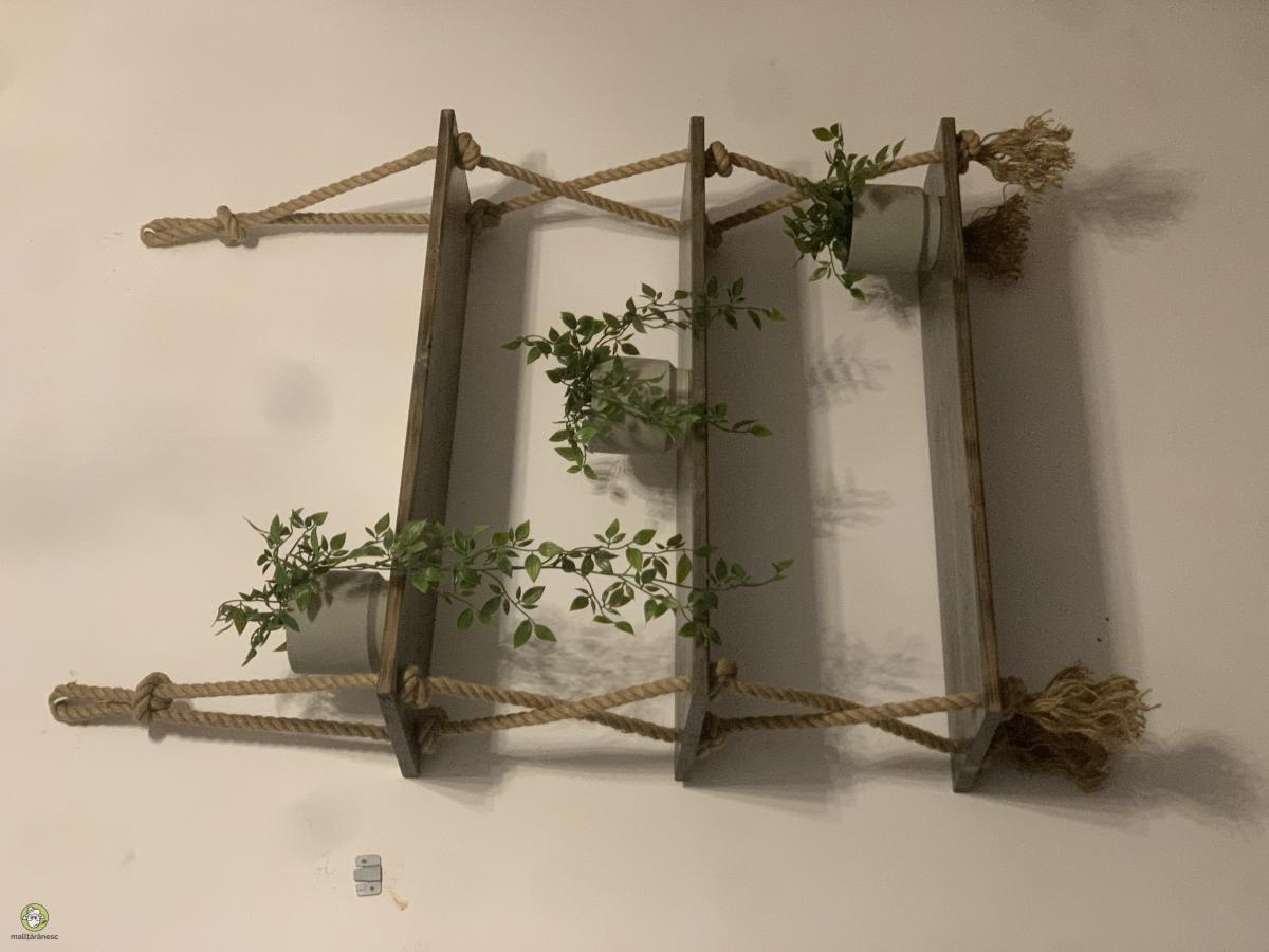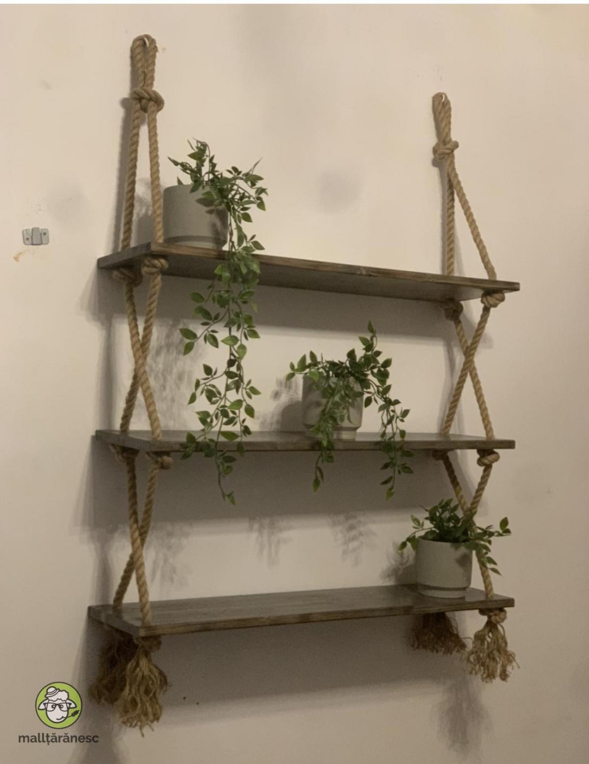Raft realizat cu 3 polițe prinse in sfori de iuta.