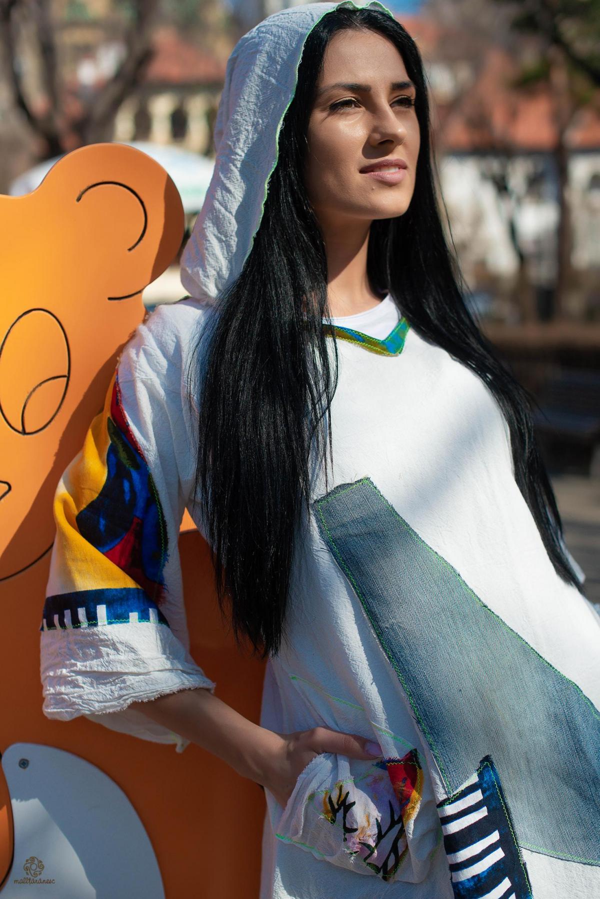 Rochie cu gluga din bumbac/ panza topita romaneasca.
