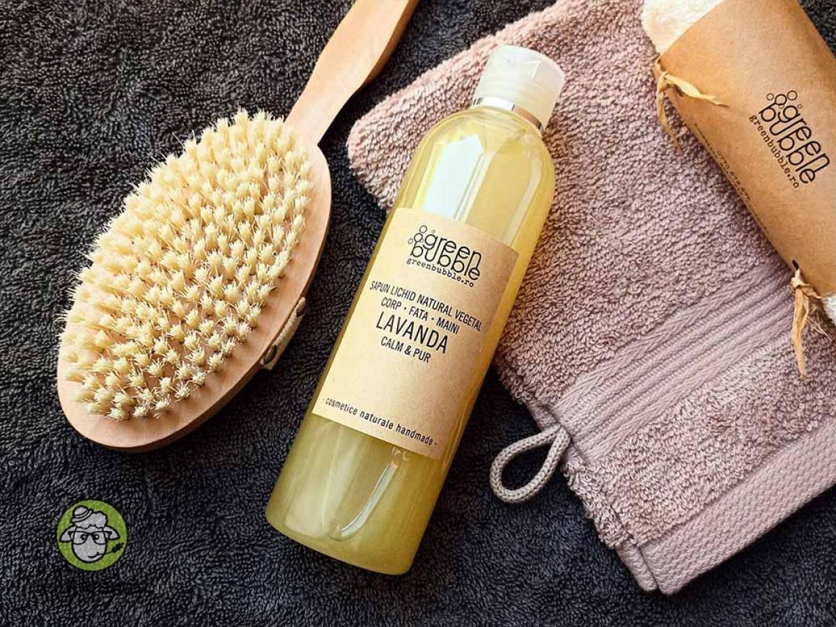 Săpun Calm & Pur cu Lavandă cu un miros proaspăt de flori de lavandă. Un săpun lichid natural hidratant, emolient, liniștitor. Săpunul este potrivit pentru toate tipurile de piele, benefic pentru corp, față și mâini.