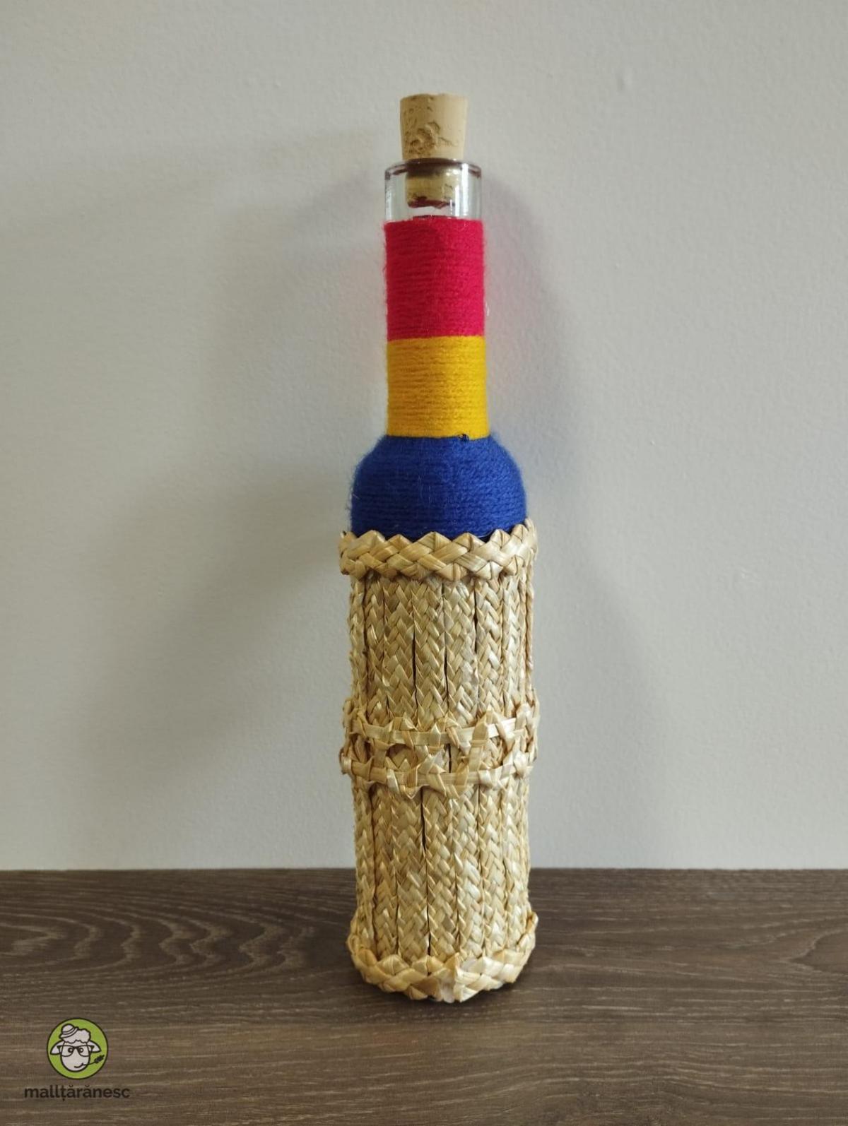 Sticlă îmbrăcată cu fir de iută și tricolor pentru ocazii deosebite, 500 ml