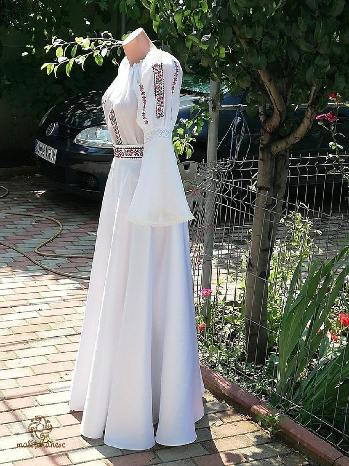Tinuta eleganta brodata cu motive traditionale, potrivita pentru orice eveniment. Fusta poate fi lunga sau scurta