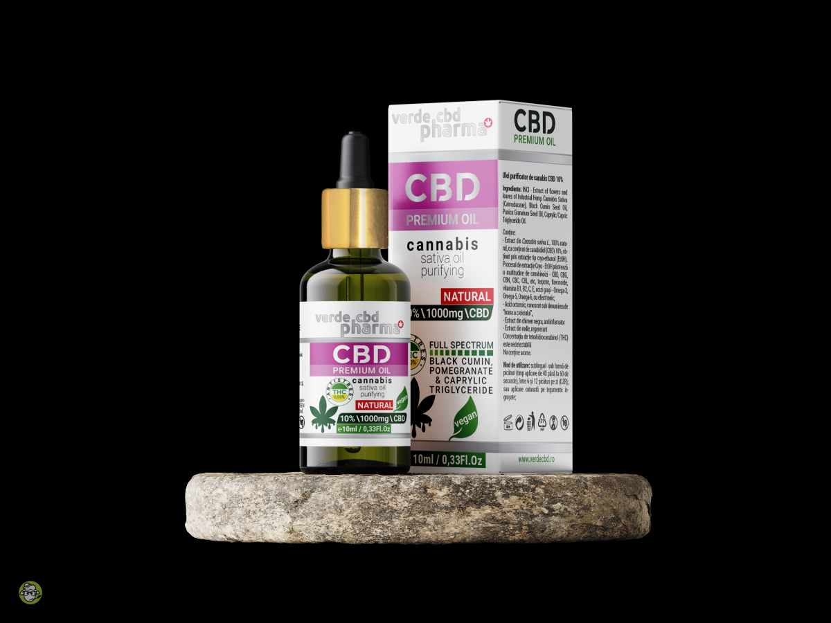 Help+ 10% de la Verde® CBD Pharma, reprezinta un extract din canepa autentic care este purtat de chimenul negru, organic, biodinamic care ofera o biodisponibilitate crescuta. Un concentrat de ulei din plante intregi, continand fitocanabinoizi naturali esentiali organismului. Aceasta tinctura concentrata ofera cantitati standardizate cu cei mai importanti compusi si fitocanabinoizi. Produsele Verde CBD Pharma au o concentratie semnificativa de fitocanabinoizi – CBD, CBG, CBN, CBC, CBL, terpene, flavonoide, vitamina B1, B2, C, E, acizi grasi – Omega-3, Omega-5, Omega-6, etc., toate acestea oferind un efect tonic, revitalizant, complet. Totodata, continutul de acid octanoic, cunoscut si sub denumirea de “hrana a creierului”, ofera revitalizare generala cu efect antistres si un plus de memorie si concentrare. Mai mult, aditivarea produsului cu extract din chimen negru (Nigella Sativa) de cea mai buna calitate, are un continut ridicat de antioxidanti, in special, uleiul este bogat in timochinona, care are efecte antioxidante si antiinflamatoare puternice. Ca rezultat, studiile sugereaza ca acest compus poate proteja sanatatea creierului si cresterea de absorbtie a tuturor canabinoizilor prezenti in produs. In plus, extractul din rodie, ofera efect regenerant si de anti-imbatranire. Beneficiati de un somn mai calitativ si mai putina anxietate, de o recuperare imbunatatita post-antrenament si castig a masei musculare atunci cand va antrenati. De asemenea, promoveaza productia de colagen in corpul dumneavoastra, o proteina vitala care joaca un rol important in a va oferi o piele si muschi tonifiati. Cu o utilizare regulata, uleiul CBD ofera corpului capacitati de autoregenerare si intretinere, oferindu-va in acelasi timp puterea pentru antrenament sustinut sau competitii sportive. Conceptul Verde CBD Pharma va permite sa va bucurati oriunde si oricand de toate beneficiile canabinoizilor si a tuturor suplimentelor purtatoare deoarece nu contin THC.