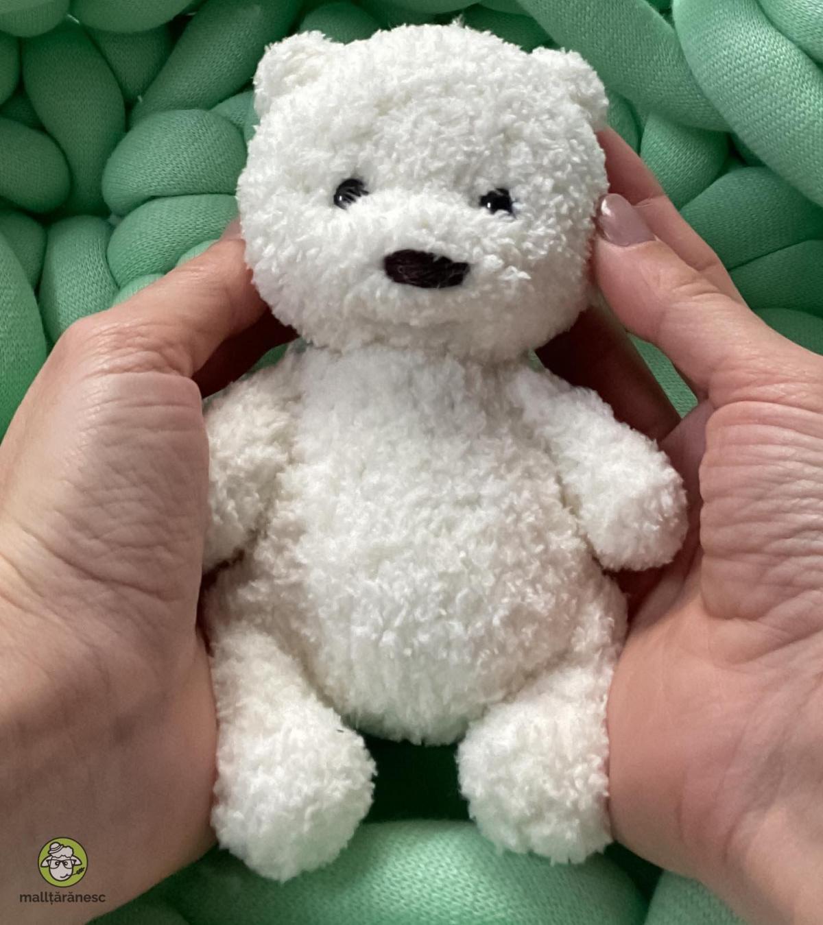 Ursul este tricotat manual si are16 cm lungime. Firele folosite sunt baby friendly, iar jucaria este sigura pentru nou nascuti si nu numai. Umplutura; melana superball, se poate spala la masina de spalat, centrifugare usoara. Isi revine dupa uscare la forma initiala, pastrandu-se pufoasa dupa spalari multiple. – Este hipoalergica, antimicotica. 100 % PES. În câmpul de poze sunt produsele pe care le-am făcut și care te vor ajuta în procesul de decizie. Se pot face și pe alte culori. Jucaria se face la comandă, și durează în jur de 3 zile lucrătoare de la confirmarea plății.