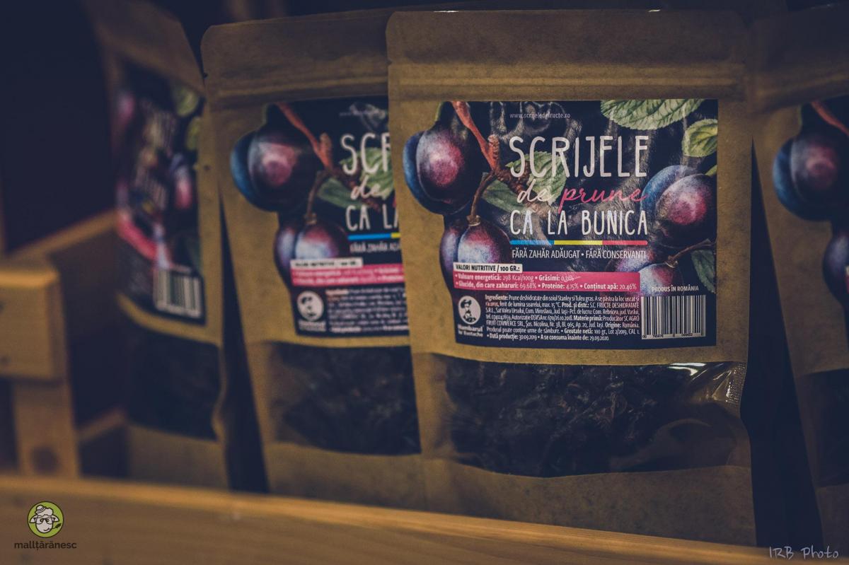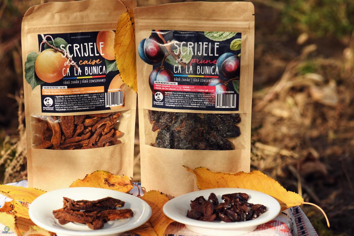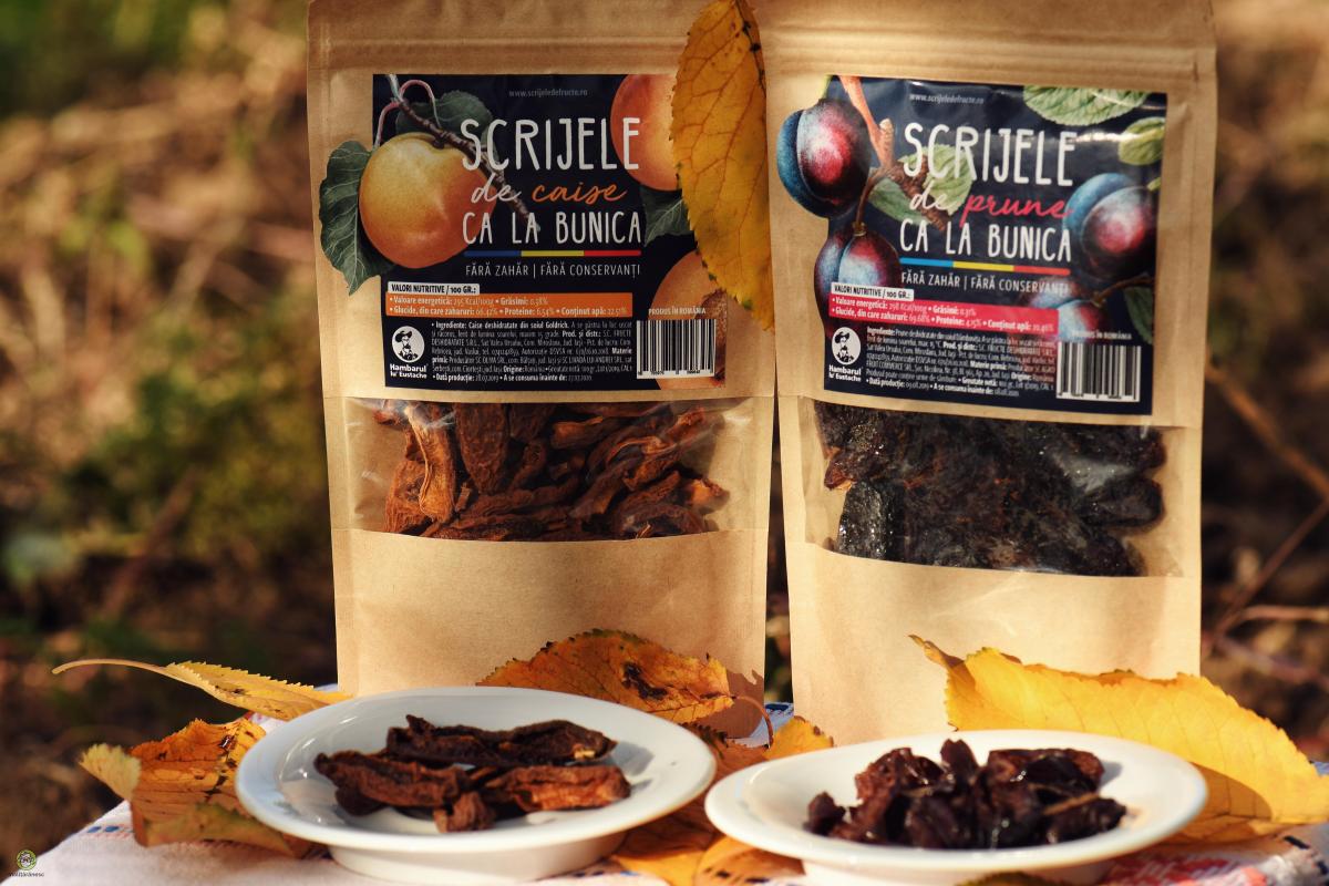 - Prune deshidratate (ambalate in pungute cu ZIP si sigilate termic - 100 grame) comercializate sub brandul de Scrijele de prune;
