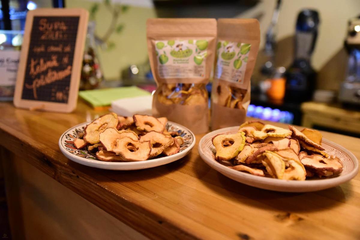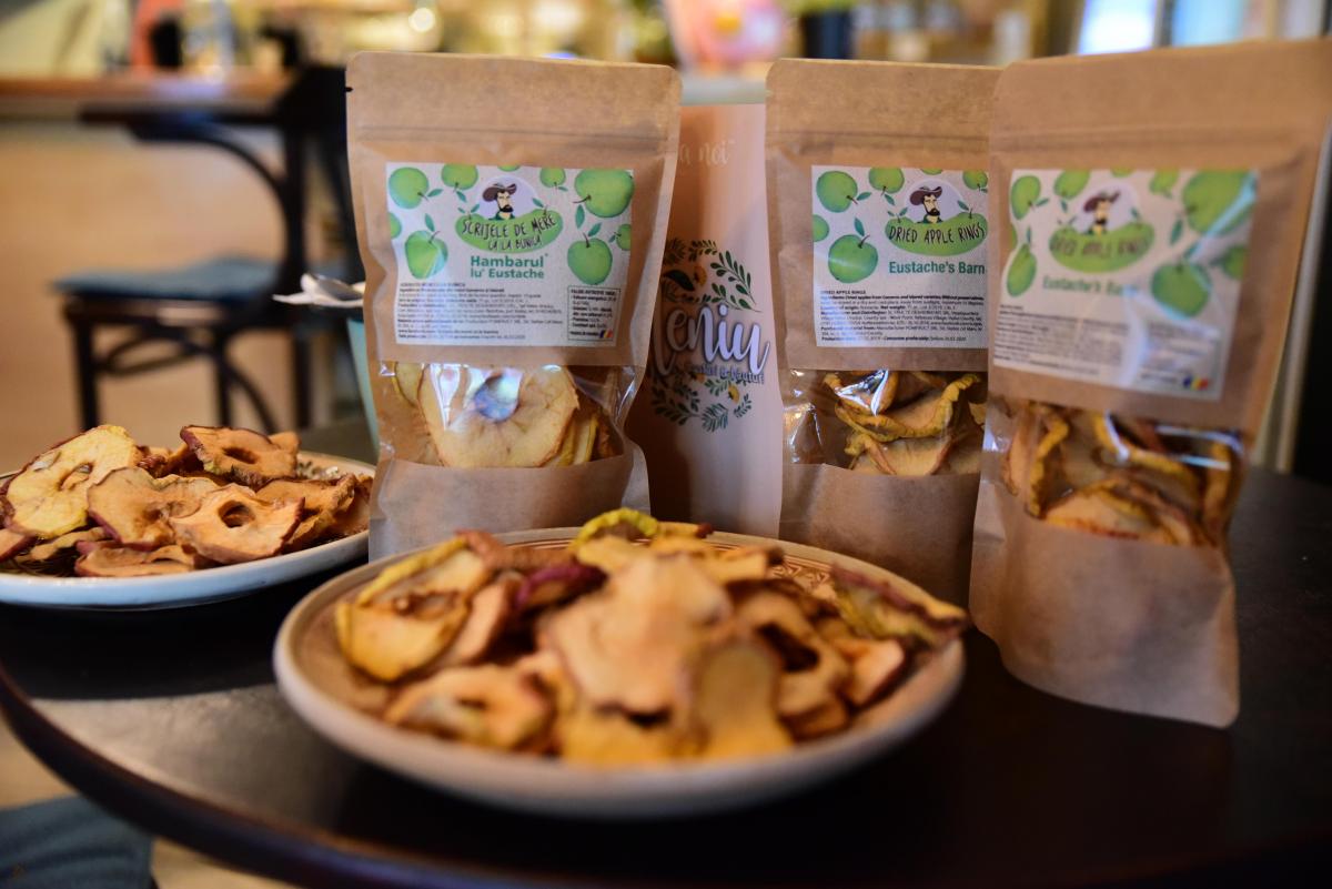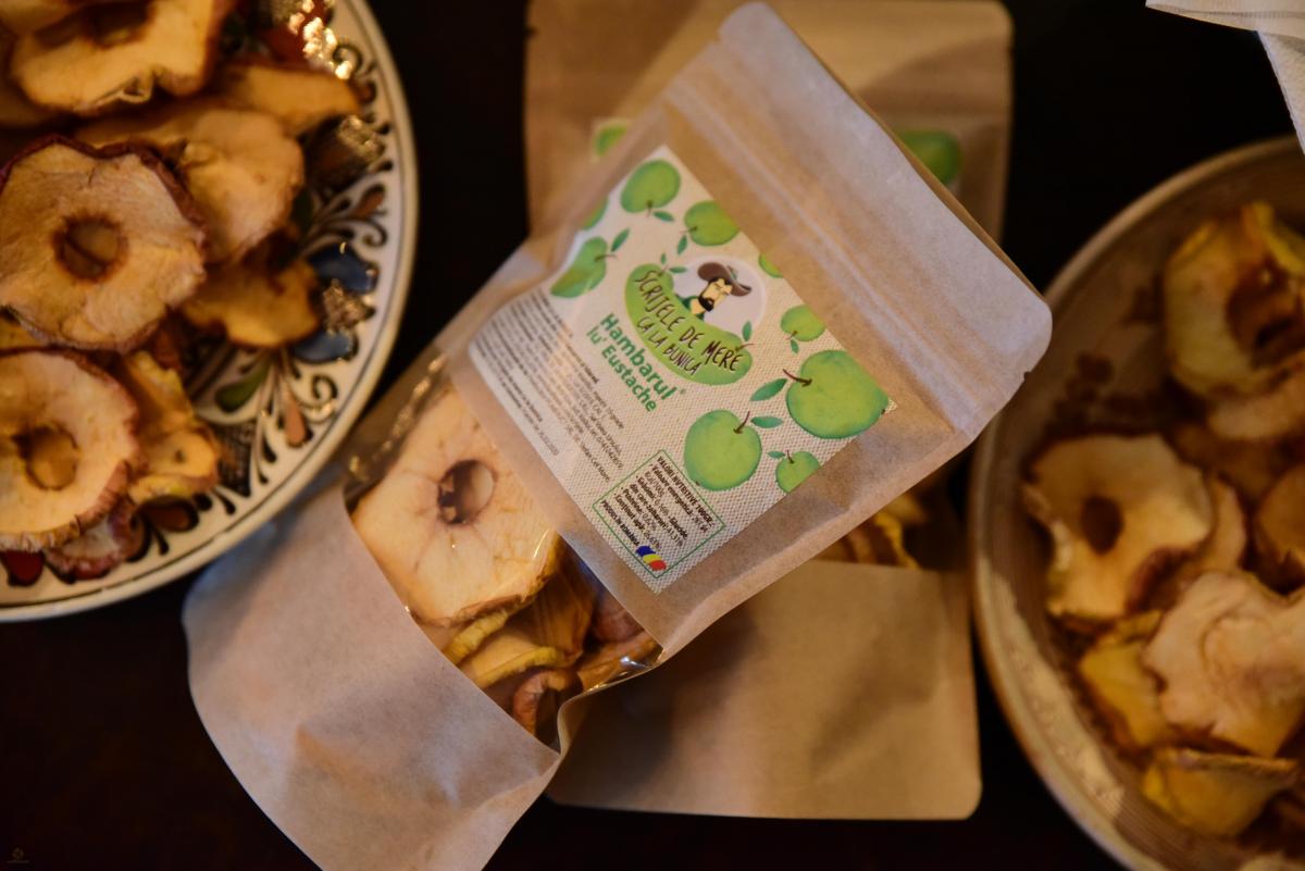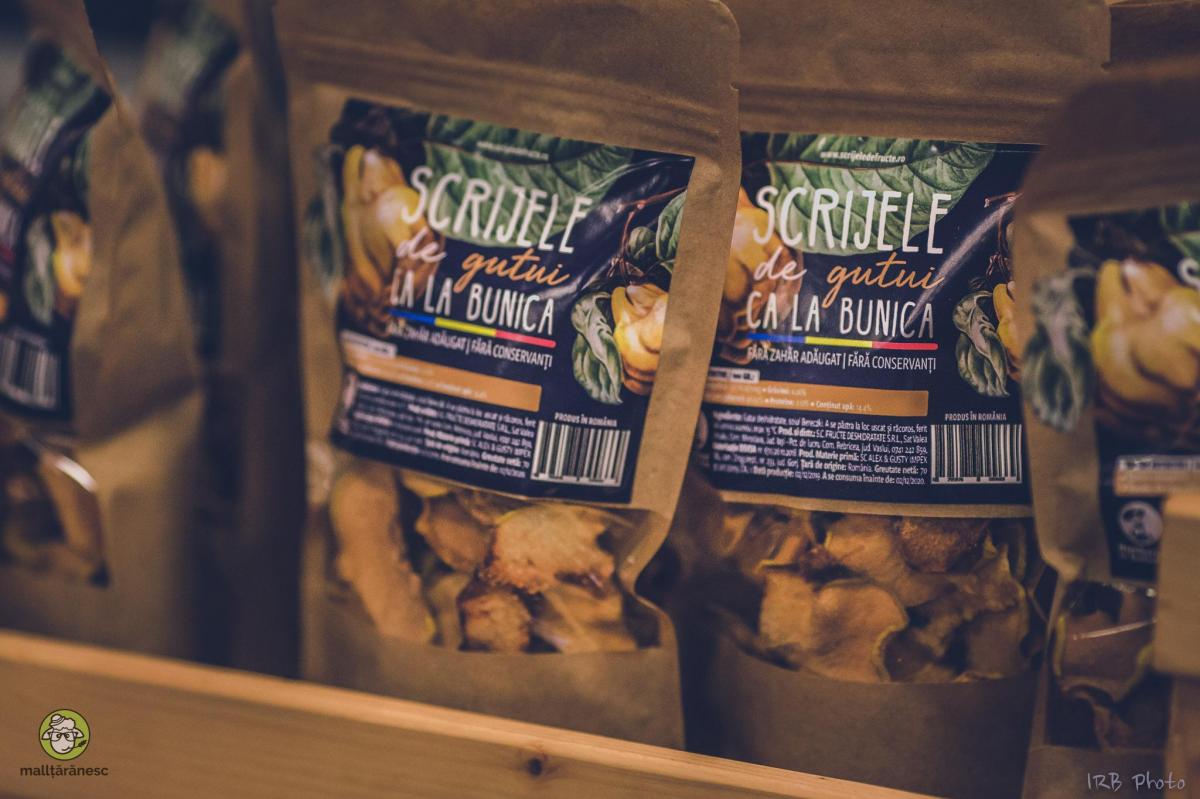 - Mere deshidratate (ambalate in pungute cu ZIP si sigilate termic - 75 grame) comercializate sub brandul de Scrijele de mere;