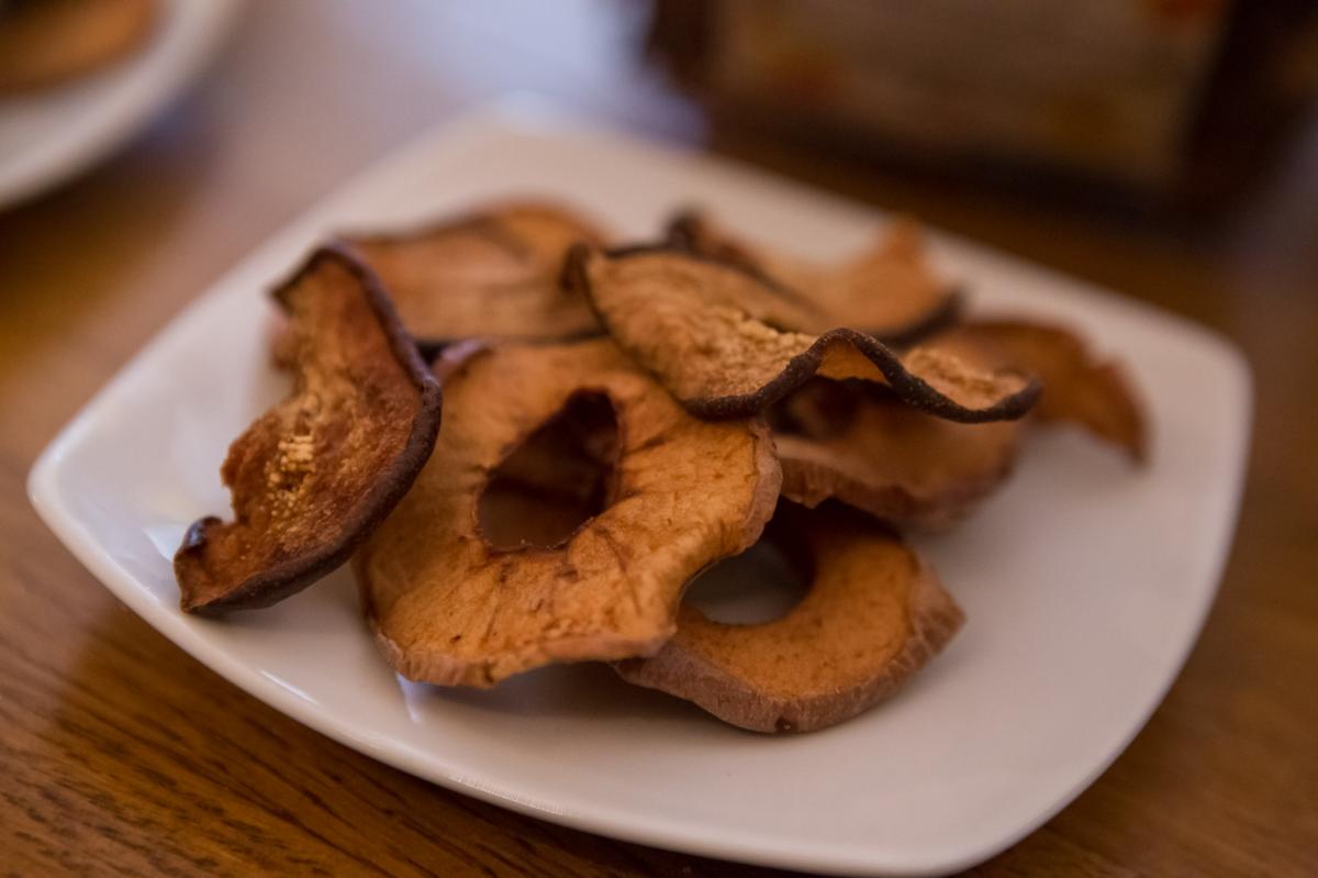 - Fructele sunt spalate, se elimina cotorul/samburele, se feliaza, se aseaza pe site din inox si se introduc in cuptorul electric unde sunt deshidratate la 40 gr. timp de aprox. 28-35 de ore, ambalate și etichetate. Nu sunt adaugate alte elemente pentru conservarea acestora.